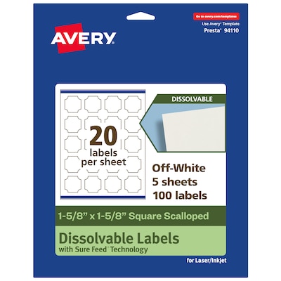 Order Avery Dissolvable Decorative Edge Multipurpose Labels, 1-5/8" x 1-5/8", Off-white, 100/Pack (94110) today at Quill.com and get fast shipping. Stack coupons to get free gifts & extra discounts!