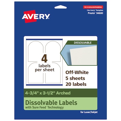 Avery Dissolvable Decorative Edge Multipurpose Labels, 4.75" x 3.5", Off-white, 20/Pack (94600)