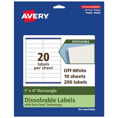 Avery Dissolvable Rectangle Multipurpose Labels, 1" x 4", Off-white, 200/Pack (94202)