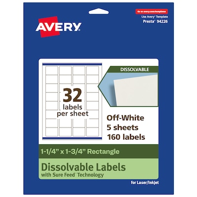 Avery Dissolvable Rectangle Multipurpose Labels, 1.25" x 1.75", Off-white, 160/Pack (94226)