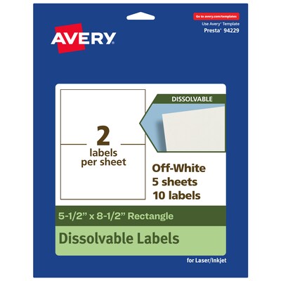 Avery Dissolvable Rectangle Multipurpose Labels, 5.5" x 8.5", Off-white, 10/Pack (94229)