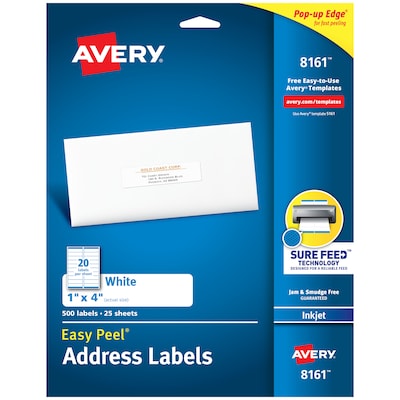 Avery Easy Peel Inkjet Address Labels, 1" x 4", White, 500 Labels/Pack (8161)