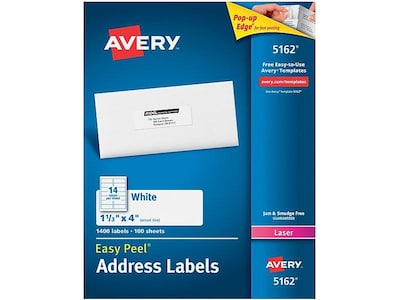 Avery Easy Peel Laser Address Labels, 1 1/3" x 4", White, 14/Sheet, 100 Sheets/Pack, 5 Packs/Carton (5162CT)