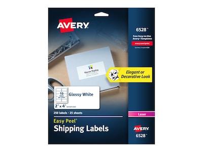 - Avery Easy Peel Laser Shipping Labels, 2" x 4", White, 10 Labels/Sheet, 25 Sheets/Pack (6528)