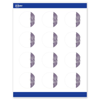 Add an elevated touch to branding and events with Avery(R) 2" Diameter Matte White Round Cards featuring the Purple and Silver Gingko Leaves design. Upgrade your business or event with premium, printable round cards that feature a pre-printed border with elegant metallic silver accents, delivering a look no standard printer can match. With a design already pre-printed, you can easily customize the blank space while using less ink—just personalize and print. For a cohesive look, pair these round cards with other Avery(R) products in the same design collection. Made with sturdy 80 lbs/216 gsm cardstock and micro-perforated edges, these cards feature a pre-printed design on one side, but can be personalized on both sides. The smooth matte white finish delivers clean, versatile results that work beautifully across a range of projects. Built-in Sure Feed technology creates a more reliable feed through your printer to reduce misalignments and printer jams. Compatible with laser and inkjet printers, these round cards make it easy to print wedding favor tags, gift tags, business cards, and more with professional results. Just use Avery(R) Design & Print and search Avery Presta(R) Template S00-F4T to add your own logo, text, and artwork for a personal touch. Enjoy effortless customization with results that look truly professional.