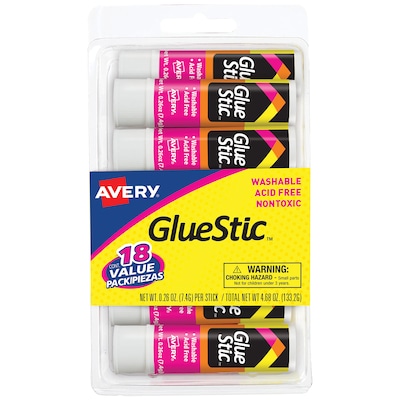 Fasten photos, cardboard, and paper to a wide range of surfaces with this bonus 18-pack of Avery glue sticks.