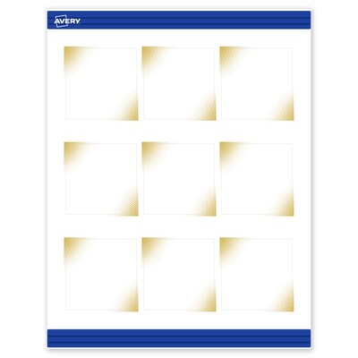 Add an elevated, professional touch to your branding or event with Avery(R) Square 2-1/2" x 2-1/2" Matte White Business Cards featuring the Gold Blush design. These premium cards are pre-printed with elegant, metallic gold accents that standard desktop printers simply can't replicate, giving your business or event an instant upgrade. With a design already pre-printed, you can easily customize the blank space while using less ink—just personalize and print. For a cohesive look, pair these business cards with other Avery(R) products in the same design collection. Made with sturdy 80 lbs / 216 gsm cardstock and micro-perforated edges, these customizable cards feature a pre-printed design on one side and can be personalized on both sides for full customization. The smooth matte white finish delivers clean, versatile results that work beautifully across a wide range of projects. Compatible with laser and inkjet printers, these cards make it easy to print personalized business cards with professional results. Built-in Sure Feed(R) technology is designed to provide a more reliable feed through your printer, helping to reduce misalignments, printer jams, and wasted product. Search Avery Presta(R) Template S00-EWK, and use Avery(R) Design & Print to add your own logo, text, and artwork. Our easy-to-use design software lets you add your own personal touch while enjoying the consistency of the stunning, pre-printed design.