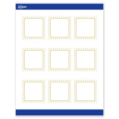 Pre-printed with beautiful designs, Avery Square 2-1/2" x 2-1/2" Matte White Cards with the Gold Border with Gold Dots design help save ink and also elevate your branding and events. Pre-designed and printed with shiny matte gold ink with high-quality printers, these patterns will definitely stand out and are not easily achieved with desktop printers. Mix and match these cards with other Avery cards, tags, and name badges from the same collection that have the same pre-printed design to create a cohesive look. Made with durable 80 lbs / 216 gsm cardstock with microperforated edges, these cards are great for creating double-sided thank you cards, business cards, RSVP cards, QR code cards, and more. The versatile matte white material is a great solution for any project. Compatible with both laser and inkjet printers, these cards make it a breeze to personalize them with your own information with a desktop printer while still looking professional. Avery premium cards are carefully constructed with beneficial features to provide the best results and allow your brand to stand out. Sure Feed technology reduces printer jams by creating a more reliable feed through your printer. Easily customize gold wedding cards, luxury holiday event cards, premium event cards, festive gold cards, and more with your own logos, text, and designs by searching for the Presta ID S00-DJ4 and using the templates and tools in Avery Design & Print on the Avery site. Whether you’re a business owner that wants to add more flair to products, an event planner looking to elevate an event, or a teacher looking to step up class projects, Avery cards make it easy to translate your designs into reality.