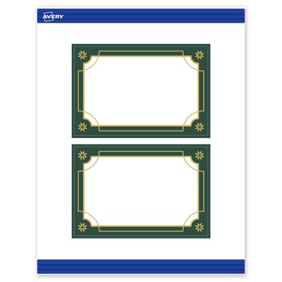 - Designed to coordinate: Pair with other Avery(R) products in the pre-printed Green & Metallic Gold Border design featuring metallic accents that desktop printers can't replicate