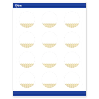 Add an elevated, professional touch to your branding or event with Avery(R) Round 2" Diameter Matte White Business Cards featuring the Gold Lace Trim design. These premium cards are pre-printed with elegant, metallic gold accents that standard desktop printers simply can't replicate, giving your business or event an instant upgrade. With a design already pre-printed, you can easily customize the blank space while using less ink—just personalize and print. For a cohesive look, pair these round cards with other Avery(R) products in the same design collection. Made with sturdy 80 lbs / 216 gsm cardstock and micro-perforated edges, these customizable cards feature a pre-printed design on one side and can be personalized on both sides for full customization. The smooth matte white finish delivers clean, versatile results that work beautifully across a wide range of projects. Compatible with laser and inkjet printers, these cards make it easy to print personalized round cards with professional results. Built-in Sure Feed(R) technology is designed to provide a more reliable feed through your printer, helping to reduce misalignments, printer jams, and wasted product. Search Avery Presta(R) Template S00-EWY, and use Avery(R) Design & Print to add your own logo, text, and artwork. Our easy-to-use design software lets you add your own personal touch while enjoying the consistency of the stunning, pre-printed design.