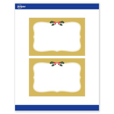 - Designed to coordinate: Pair with other Avery(R) products in the pre-printed Metallic Gold Border with Holly design featuring metallic accents that desktop printers can't replicate