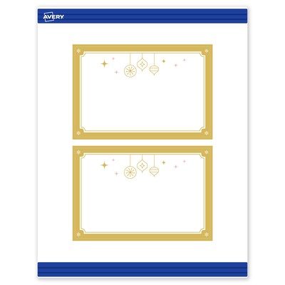 Avery Gold-Metallic Ornaments Matte Blank Card, White, 20/Pack (S00-FH3)