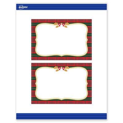 - Designed to coordinate: Pair with other Avery(R) products in the pre-printed Red & Green Plaid with Metallic Gold Frame design featuring metallic accents that desktop printers can't replicate