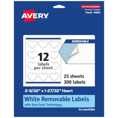Order Avery Heart Shaped Laser/Inkjet Multipurpose Labels, 2-9/32" x 1-27/32", White, 300 Labels/Pack (94603) today at Quill.com and get fast shipping. Stack coupons to get free gifts & extra discounts!