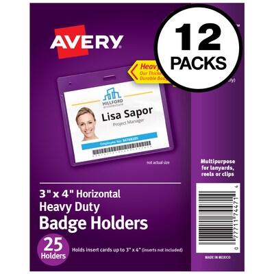 Avery Heavy-Duty Secure Top Badge Holders, 3" x 4", Landscape, Clear, 300/Carton (74471)
