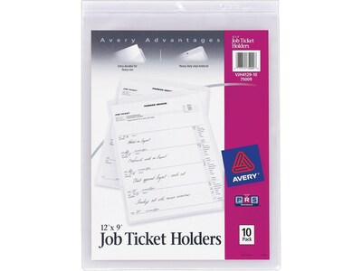 Avery Heavy Duty Vinyl Job Ticket Holders, 9" x 12", Clear, Top Loading, 10/Pack (75009)