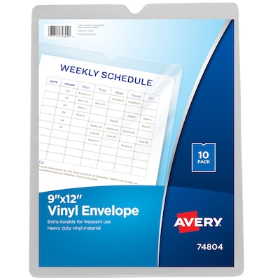 Protect your important papers from spills and dirt with this 10-pack of Avery vinyl 9 x 12-inch clear top load envelope-design protectors.