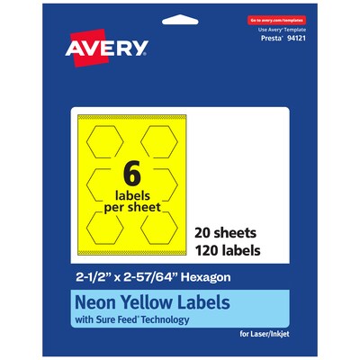 Avery Hexagon Laser/Inkjet Multipurpose Labels, 2-1/2" x 2-57/64", Neon Yellow (120/Pack)