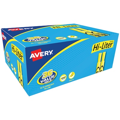 Avery Hi-Liter Desk-Style Highlighters, Fluorescent Yellow, Value Pack of 36 (98208)