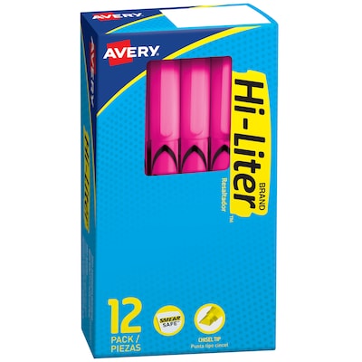 Avery Hi-Liter Stick Highlighters, Chisel, Pink, Dozen (23592)