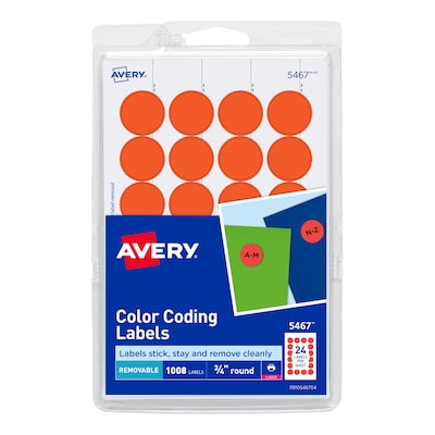 Mark your important objects or dates with neon clarity. These Removable Color Coding Labels affix firmly to files, documents, inventory, calendars and more to help you stay organized, and they are removable so you can peel them away when you don't need them anymore. The bright color draws the eye so you can easily find similar items or keep track of important appointments. Customize the labels either by hand or with free templates available on avery.com. They are good for document and inventory control, routing, organizing, highlighting, price marking and scheduling.