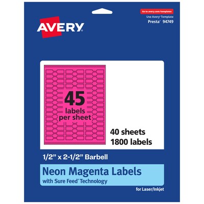 Avery Laser/Inkjet Barbell Multipurpose Labels, 0.5" x 2.5", Neon Magenta, 1800/Pack (94749)