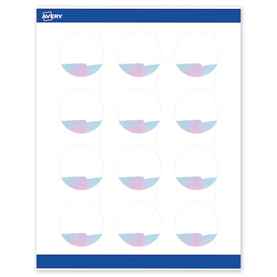 Create a lasting impression with easy-to-customize Avery(R) Labels that feature a stunning, pre-printed design. Elevate your branding or event with Avery(R) Round 2" Diameter Matte White Labels featuring the Iridescent Watercolors design. These premium, printable labels feature a pre-printed border with elegant metallic silver accents, delivering a look no standard printer can match. With a pre-printed design, you can customize the blank space while using less ink. For a cohesive look, pair these labels with other Avery(R) products in the same design collection. Featuring convenient Pop-Up Edge technology for faster peeling, these permanent customizable labels apply smoothly and stay securely in place. The smooth matte white finish delivers clean, versatile results that work beautifully across a range of projects. Built-in Sure Feed technology creates a more reliable feed through your printer to reduce misalignments and printer jams. Easily design and print wedding stickers, wedding favor labels, thank you labels, and more using Avery Presta(R)(R) Template S00-F3S.