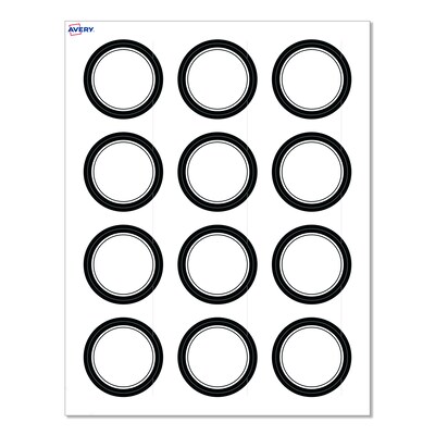 Pre-printed with beautiful designs, Avery Round 2" Diameter Matte White Labels with the Double Black Border Design help save ink and also elevate your branding and events. Pre-designed and printed with high-quality printers, these eye-catching premium designs can’t be easily achieved with standard desktop printers. These pre-printed embellishments also help save your printer ink so that you only need to print your customizable information. Mix and match these labels with other Avery products from the same collection that have the same pre-printed design to create a cohesive look. Featuring the helpful Pop-Up Edge technology to help lift and peel labels quickly, these permanent-adhesive labels are great for product labels, care instructions labels, ingredient labels, and more. The versatile matte white material is a great solution for any project. Compatible with both laser and inkjet printers, these labels make it a breeze to personalize them with your own information with a desktop printer while still looking professional. Sure Feed technology reduces printer jams by creating a more reliable feed through your printer. Easily customize food labels, favor labels, candle labels, thank you labels, and more with your own logos, text, and designs by searching for the Presta ID S00-D2B and using the templates and tools in Avery Design & Print on the Avery site. Whether you’re a business owner that wants to add more flair to products, an event planner looking to elevate an event, or a teacher looking to step up class projects, Avery labels make it easy to translate your designs into reality.
