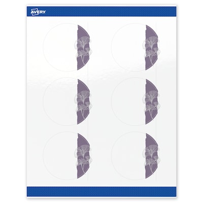 Add an elevated touch to branding and events with Avery(R) Round 3" Diameter Glossy White Labels featuring the Purple and Silver Gingko Leaves design. Upgrade your business or event with these premium, printable labels that feature a pre-printed border with elegant metallic silver accents, delivering a look no standard printer can match. With a design already pre-printed, you can easily customize the blank space while using less ink—just personalize and print. For a cohesive look, pair these labels with other Avery(R) products in the same design collection. Featuring convenient Pop-Up Edge technology for faster peeling, these permanent customizable labels apply smoothly and stay securely in place. The glossy white finish reflects light for vivid color and detail, creating a premium, polished appearance. Built-in Sure Feed technology helps reduce misalignments and printer jams by creating a more reliable feed through your printer. Compatible with laser and inkjet printers, these labels make it easy to print labels for favors, wedding stickers, thank you stickers, and more with professional results. Just use Avery(R) Design & Print and search Avery Presta(R) Template S00-F4S to add your own logo, text, and artwork for a personal touch. Enjoy effortless customization with results that look truly professional.