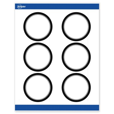 Pre-printed with beautiful designs, Avery Round 3" Diameter Matte White Labels with the Double Black Border design help save ink and also elevate your branding and events. Pre-designed and printed with high-quality printers, these eye-catching premium designs can’t be easily achieved with standard desktop printers. Mix and match these labels with other Avery cards, tags, and name badges from the same collection that have the same pre-printed design to create a cohesive look. Featuring the helpful Pop-Up Edge technology to help lift and peel labels quickly, these permanent-adhesive labels are great for bottle labels, mason jar labels, product labels, and more. The versatile matte white material is a great solution for any project. Compatible with both laser and inkjet printers, these labels make it a breeze to personalize them with your own information with a desktop printer while still looking professional. Avery premium labels are carefully constructed with beneficial features to provide the best results and allow your brand to stand out. Sure Feed technology reduces printer jams by creating a more reliable feed through your printer. Easily customize stickers, candle labels, favor labels, holiday & wedding labels, and more with your own logos, text, and designs by searching for the Presta ID S00-DM1 and using the templates and tools in Avery Design & Print on the Avery site. Whether you’re a business owner that wants to add more flair to products, an event planner looking to elevate an event, or a teacher looking to step up class projects, Avery labels make it easy to translate your designs into reality.