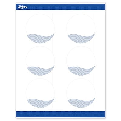 Add an elevated, professional touch to your branding or event with Avery(R) Round 3" Diameter Matte White Labels featuring the Blue Waves design. These premium labels are pre-printed with a vivid, high-resolution design, giving your business or event an instant upgrade. With a design already pre-printed, you can easily customize the blank space while using less ink—just personalize and print. For a cohesive look, pair these labels with other Avery(R) products in the same design collection. Featuring convenient Pop-Up Edge technology for faster peeling, these permanent customizable labels apply smoothly and stay securely in place. The smooth matte white finish delivers clean, versatile results that work beautifully across a wide range of projects. Compatible with laser and inkjet printers, these labels make it easy to print personalized labels with professional results. Built-in Sure Feed(R) technology is designed to provide a more reliable feed through your printer, helping to reduce misalignments, printer jams, and wasted product. Search Avery Presta(R) Template S00-EV1, and use Avery(R) Design & Print to add your own logo, text, and artwork. Our easy-to-use design software lets you add your own personal touch while enjoying the consistency of the stunning, pre-printed design. Try it out on the Avery website today.