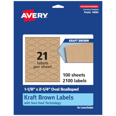 Order Avery Laser/Inkjet Decorative Edge Multipurpose Labels, 1-1/8" x 2-1/4", Kraft Brown, 2100 Labels/Box ( 94061) today at Quill.com and get fast shipping. Stack coupons to get free gifts & extra discounts!