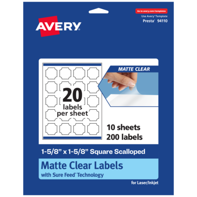 Order Avery Laser/Inkjet Decorative Edge Multipurpose Labels, 1-5/8" x 1-5/8", Clear, 200/Pack (94110) today at Quill.com and get fast shipping. Stack coupons to get free gifts & extra discounts!