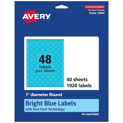 Avery Laser/Inkjet Multipurpose Circle Labels, 1" Dia., Bright Blue, 1920/Pack (94500)