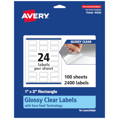Avery Laser/Inkjet Multipurpose Labels, 2" x 1", Glossy Clear, 2400/Box (94220)