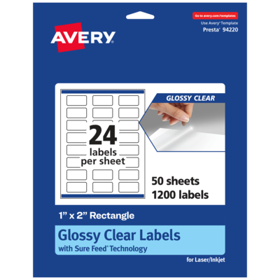 Avery Laser/Inkjet Multipurpose Labels, 2" x ", Glossy Clear, 1200/Box (94220)