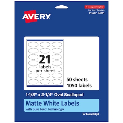 - Avery white labels with proprietary Sure Feed technology provide a more reliable feed through your printer, preventing misalignments and jams