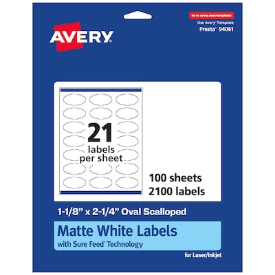 - Avery white labels with proprietary Sure Feed technology provide a more reliable feed through your printer, preventing misalignments and jams
