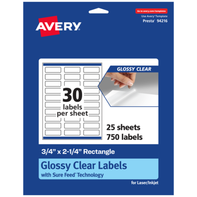 Avery Laser/Inkjet Multipurpose Labels, 2.25" x ", Glossy Clear, 750/Pack (94216)