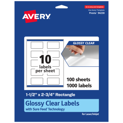 Avery Laser/Inkjet Multipurpose Labels, 2.75" x ", Glossy Clear, 1000/Box (94230)