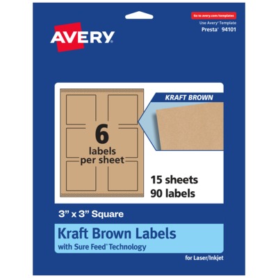 Easily add a rustic finish to crafts, gifts and products with Avery 3" x 3" Kraft Brown Square Labels. Made with a kraft brown paper material that’s smooth to the touch, Avery kraft brown labels add a natural and handcrafted look to any project. This charming kraft brown material is perfect for adding a little homespun flair to candle labels, mason jar labels, pricing labels, soap labels, product labels, canning labels, ingredient labels and more. Avery square labels are carefully constructed and developed with patented features to provide the best results for every project. Sure Feed technology prevents jams or smudges by creating a more reliable feed through your printer. The print-to-the-edge layout lets you print beautiful full-bleed designs that fill each blank sticker to the edge. The patented Easy Peel label design makes these labels easy to peel and quick to apply. Just bend the label sheet, peel off your labels and fold the sheet back flat. The strong permanent label adhesive makes sure that your labels stick and stay to a variety of surfaces without peeling, curling or falling off. Easily customize labels with your own designs, art, symbols and messaging by using the label templates and designs on the Avery website. The intuitive tools make it easy to add your personal touch to any project.