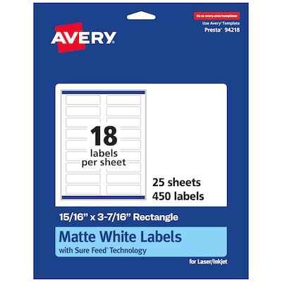 Order Avery Laser/Inkjet Multipurpose Labels, 3.4375" x 0.9375", Matte White, 450/Pack (94218) today at Quill.com and get fast shipping. Stack coupons to get free gifts & extra discounts!