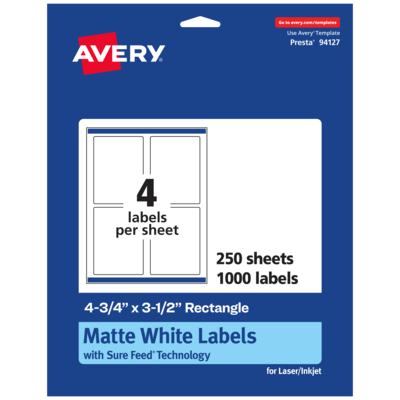 Avery Laser/Inkjet Multipurpose Labels, 3.5" x 4.75", Matte White, 1000/Box (94127)