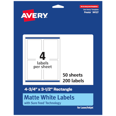 Avery Laser/Inkjet Multipurpose Labels, 3.5" x 4.75", Matte White, 200/Box (94127)