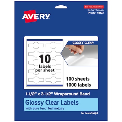 Create cosmetic labels, lotion labels, body scrub labels, mailing seals, tamper-evident labels, bottle labels that are absolutely clear with Avery 1.5" x 3.5" Glossy Clear Wraparound Band Labels. Clear as glass with a reflective shine, Avery glossy clear labels vanish when applied to glass and metal surfaces. The transparent and glossy label material is also perfect for making the colors in your design pop and look even more vibrant on lighter surfaces. Avery Wraparound Band Labels are carefully constructed and developed with patented features to provide the best results for every project. Sure Feed technology prevents jams or smudges by creating a more reliable feed through your printer. The print-to-the-edge layout lets you print beautiful full-bleed designs that fill each blank sticker to the edge. The strong permanent label adhesive makes sure that your labels stick and stay to a variety of surfaces without peeling, curling or falling off. Easily customize labels with your own designs, art, symbols and messaging by using the label templates and designs on the Avery website. The intuitive tools make it easy to add your personal touch to any project.