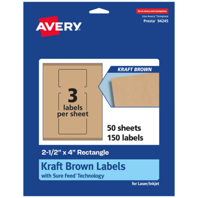 Easily add a rustic finish to crafts, gifts and products with Avery 2.5" x 4" Kraft Brown Rectangle Labels. Made with a kraft brown paper material that’s smooth to the touch, Avery kraft brown labels add a natural and handcrafted look to any project. This charming kraft brown material is perfect for adding a little homespun flair to mailing labels, product labels, labels for food containers, soap labels, candle jar labels, body scrub labels and more. Avery rectangle labels are carefully constructed and developed with patented features to provide the best results for every project. Sure Feed technology prevents jams or smudges by creating a more reliable feed through your printer. The print-to-the-edge layout lets you print beautiful full-bleed designs that fill each blank sticker to the edge. The strong permanent label adhesive makes sure that your labels stick and stay to a variety of surfaces without peeling, curling or falling off. Easily customize labels with your own designs, art, symbols and messaging by using the label templates and designs on the Avery website. The intuitive tools make it easy to add your personal touch to any project.