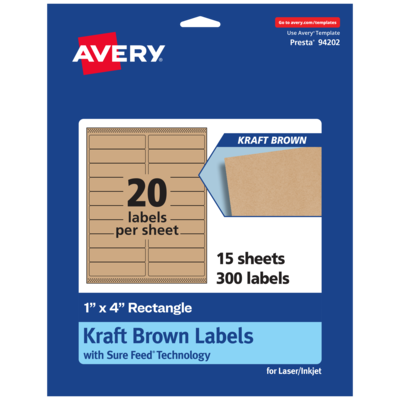 Easily add a rustic finish to crafts, gifts and products with Avery 1" x 4" Kraft Brown Rectangle Labels. Made with a kraft brown paper material that’s smooth to the touch, Avery kraft brown labels add a natural and handcrafted look to any project. This charming kraft brown material is perfect for adding a little homespun flair to goody bag labels, mailing labels, cosmetic labels, scrub labels, spice jar labels and more. Avery rectangle labels are carefully constructed and developed with patented features to provide the best results for every project. Sure Feed technology prevents jams or smudges by creating a more reliable feed through your printer. The strong permanent label adhesive makes sure that your labels stick and stay to a variety of surfaces without peeling, curling or falling off. Easily customize labels with your own designs, art, symbols and messaging by using the label templates and designs on the Avery website. The intuitive tools make it easy to add your personal touch to any project.