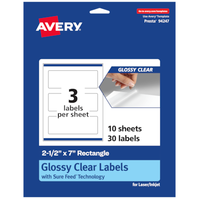 Avery Laser/Inkjet Multipurpose Labels, 7" x 2.5", Glossy Clear, 30/Pack (94247)