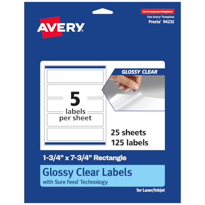 Order Avery Laser/Inkjet Multipurpose Labels, 7.75" x 1.75", Glossy Clear, 125/Pack (94232) today at Quill.com and get fast shipping. Stack coupons to get free gifts & extra discounts!