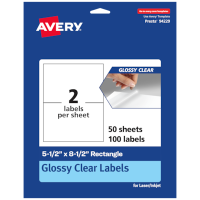 Avery Laser/Inkjet Multipurpose Labels, 8.5" x ", Glossy Clear, 100/Box (94229)